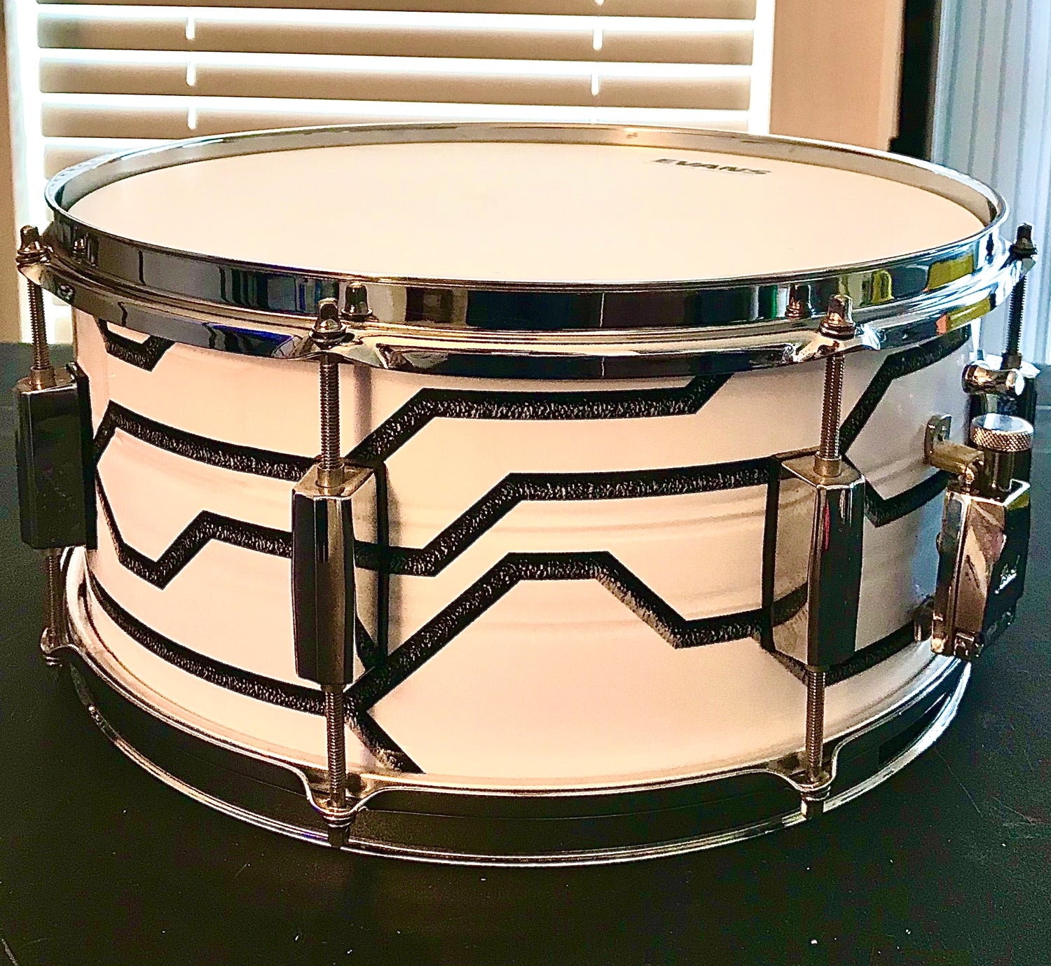 Check out this crazy snare! 14”x6” Pearl Export Steel Snare w/ custom Drumabuse signature wrap, wrapped by Adam himself! It comes with fresh Evans Genera batter head & 300 snare side head w/ Puresound Snares. This is a fun snare to add to your collection, Rock on!
