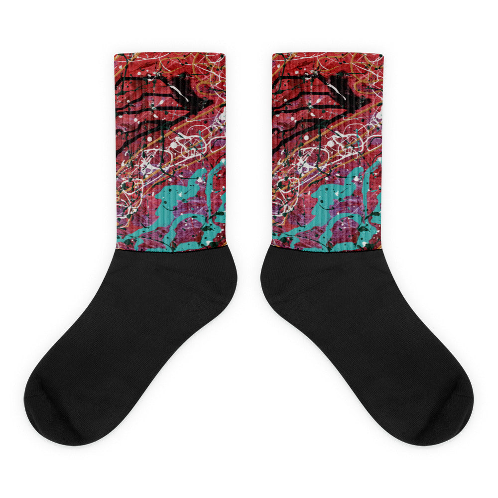 These socks are extra comfortable thanks to their cushioned bottom. The foot is black with artwork printed along the leg with crisp, bold colors that won't fade.